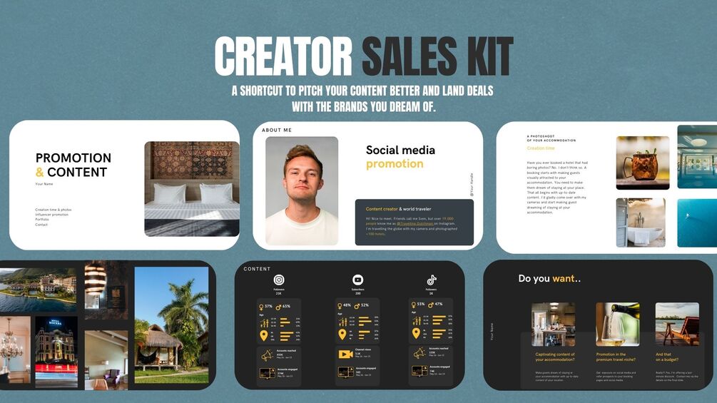 Over the past five years, I've developed and refined these media kits and sales pitch templates that have opened doors to amazing partnerships for me and many other creators. Brands like Sixt, BMW, Bowers & Wilkins, and luxurious 5-star hotels, including Marriott and Hilton, have all come on board.